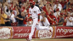 Brandon Phillips leads off the 13th inning with a home run to left field, giving the Reds a 5-4 lead.